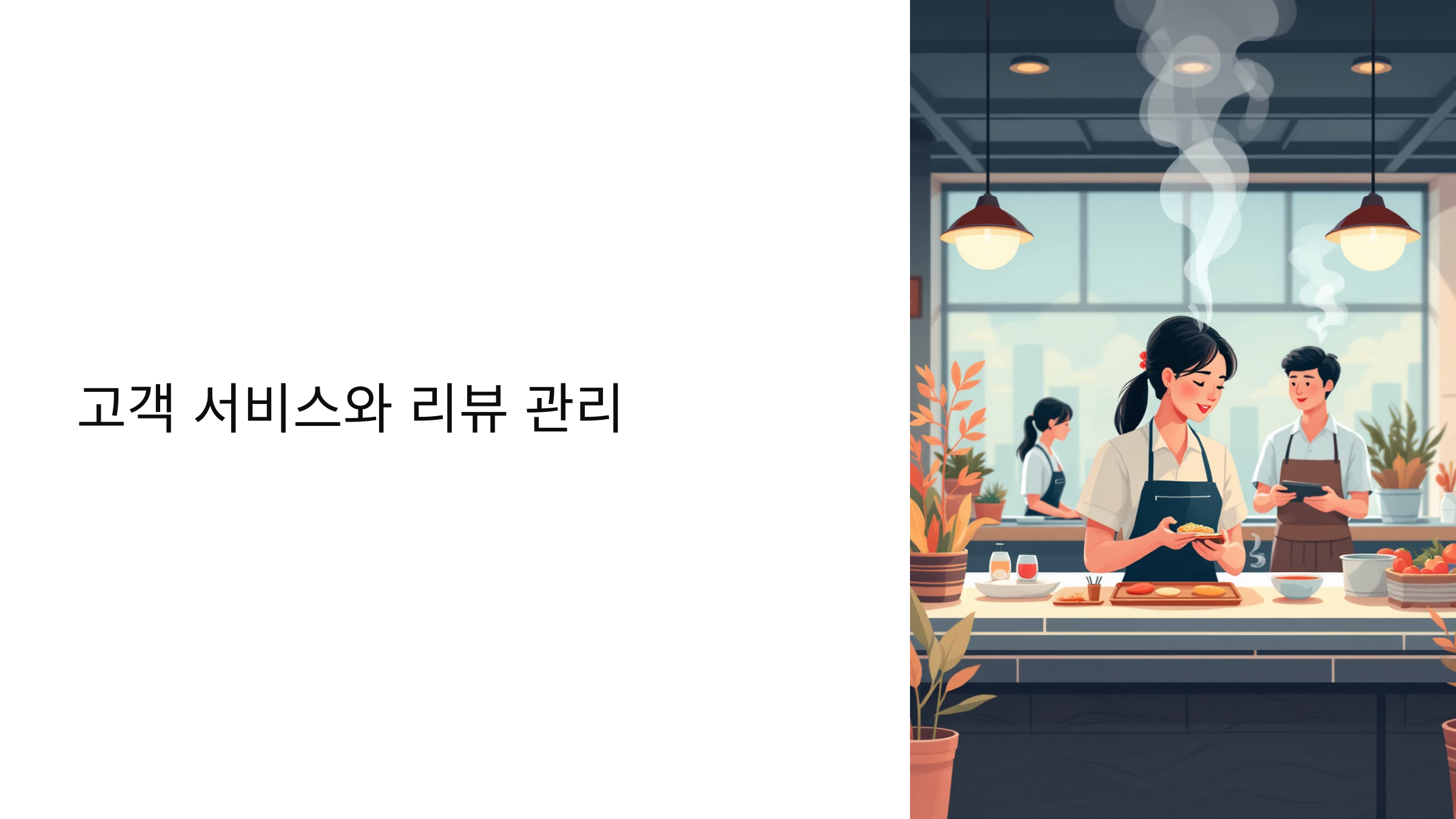 고객 서비스는 식당의 첫인상부터 마지막 순간까지 모든 경험을 포함해요. 음식의 맛만큼이나 중요한 요소가 '직원의 태도', '주문 응대', '대기 시간 관리', '청결 상태'예요. 이 모든 것이 하나로 묶여서 ‘후기’로 남게 되죠.